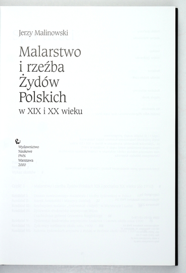 MALINOWSKI Jerzy – Malarstwo i rzeźba Żydów Polskich w XIX i XX wieku. Warszawa 2000. Wydawnictwo Naukowe PWN. 4, s. VI, [2], 434. opr. oryg. kart., obw.