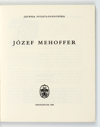 PUCIATA-PAWŁOWSKA Jadwiga – Józef Mehoffer. Wrocław 1969. Ossolineum. 16d, s. 79, [1], tabl. 2, ilustr. 63. brosz., obw.