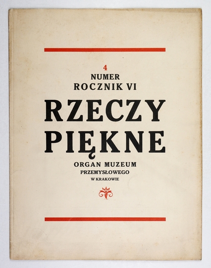 RZECZY Piękne. Organ Muzeum Przemysłowego w Krakowie. Red. naczelny Kazimierz Witkiewicz. Kraków. 4. broszura.