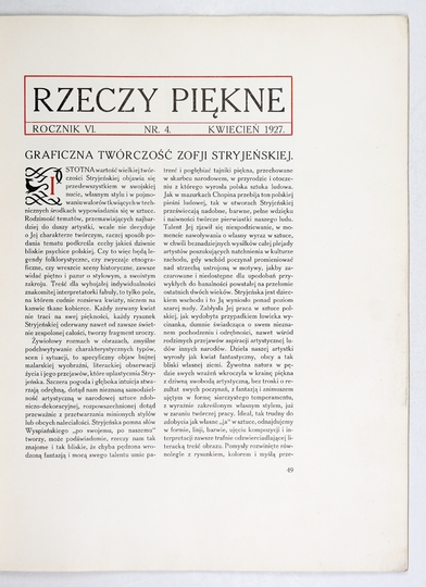 RZECZY Piękne. Miesięcznik poświęcony architekturze, rzeźbie, malarstwu, ochronie zabytków, kościelnictwu i rzemiosłom. Wyd. i red. odp. Adam Dobrodzicki. Kraków. 4. broszura.