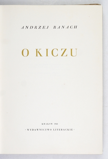 BANACH Andrzej – O kiczu. Kraków 1968. Wyd. Literackie. 8, s. 354, [1]. opr. oryg. pł., obw.