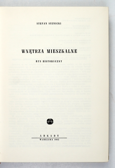 SIENICKI Stefan – Wnętrza mieszkalne. Rys historyczny. Warszawa 1962. Arkady. 8, s. 463, [3]. opr. oryg. pł.