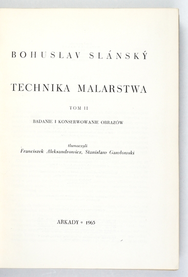 SLÁNSKÝ Bohuslaw – Technika malarstwa. T. 1-2. Warszawa 1960-1965. Arkady. 8, s. 361, [2], tablice; 419, tablice. opr. oryg. pł.