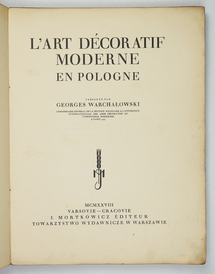 WARCHAŁOWSKI Georges – L'Art décoratif moderne en Pologne. Présenté par ... Varsovie-Cracovie 1928. J. Mortkowicz. 4, s. 176, [1]. bez oprawy.