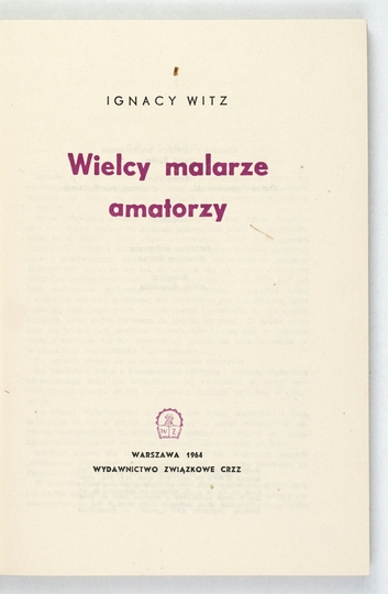 WITZ Ignacy – Wielcy malarze amatorzy. Warszawa 1964. Wydawnictwo Związkowe CRZZ. 8, s. 163, [1], tabl. 23. brosz., obw.