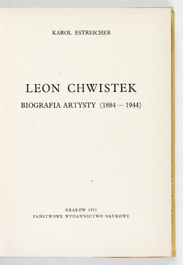 ESTREICHER Karol – Leon Chwistek. Biografia artysty (1884-1944). Kraków 1971. PWN. 8, s. VI, [2], 400, [4], tabl. barwne 4. opr. oryg. pł. bbw.