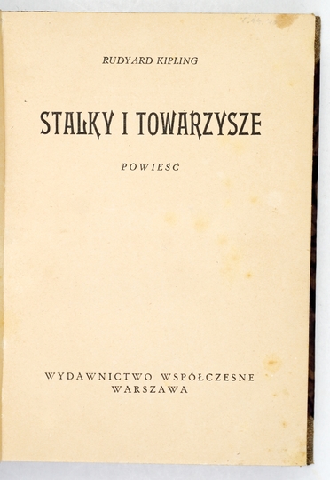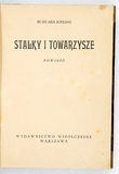 KIPLING Rudyard – Stalky i towarzysze. Powieść. Warszawa [1938]. Wydawnictwo Współczesne. 8, s. 307, [1]. opr. późn. ppł.