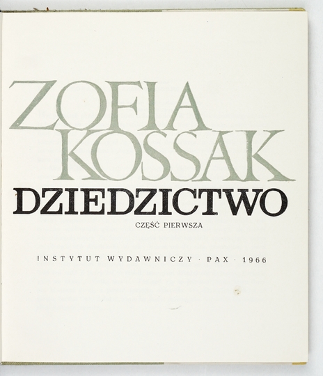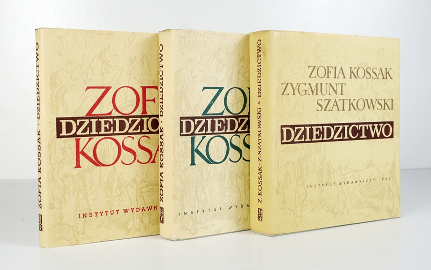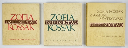 KOSSAK Zofia – Dziedzictwo. Cz. 1-3. Warszawa 1964-1967. PAX. 16d, s. 242, [5], tabl. 3; 535, [5], tabl. 4; 763, [4], tabl.23. opr. oryg. pł., obw.
