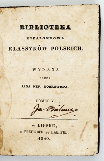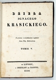KRASICKI Ignacy – Dzieła ... Tomik 5. Lipsk 1840. J. N. Bobrowicz. U Breitkopf et Haertel. 16, s. 278. opr. psk. z epoki. Bibliot. Kieszonkowa Klassyków Polskich, t. 5.