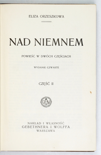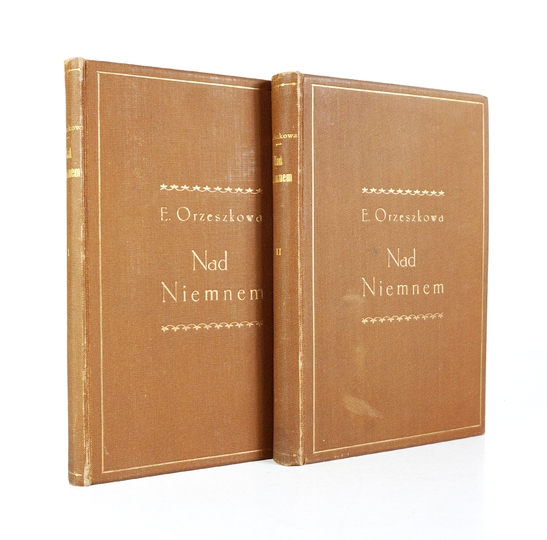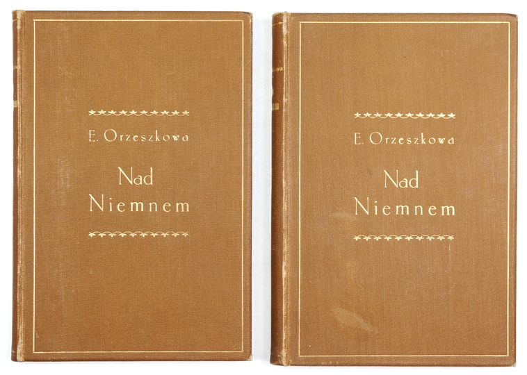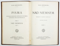 ORZESZKOWA Eliza – Nad Niemnem. Powieść w dwóch częściach. Wyd. IV. Cz. 1-2. Warszawa 1930. Gebethner i Wolff. 8, s. 198; 288. opr. pł. z epoki, górne obcięcie barwione. Pisma. Wyd. zbiorowe [...], t. 2-3.
