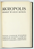 [oraz] tenże – Akropolis. Dramat w 4-ech aktach. Kraków 1904. Nakł. autora. 8,s . 160, [25], tabl. 5. razem opr. nieco późn. psk.