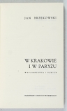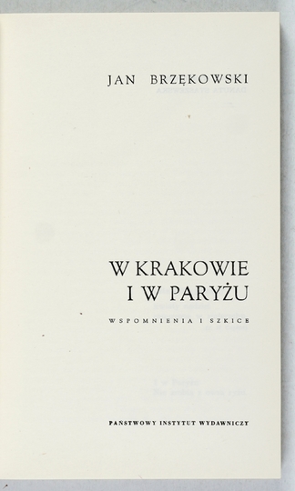 BRZĘKOWSKI Jan – W Krakowie i w Paryżu. Wspomnienia i szkice. Warszawa 1968. PIW. 16d, s. 309, [1], tabl. 18. brosz.