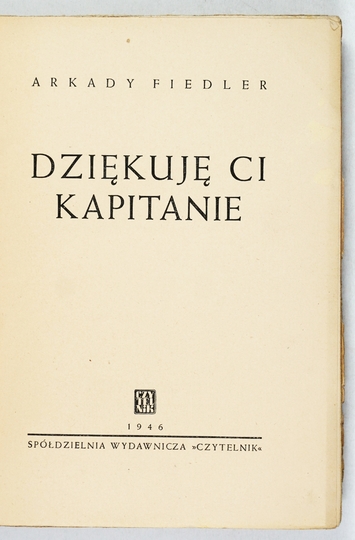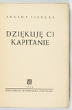 FIEDLER Arkady – Dziękuję ci kapitanie. Warszawa 1946. Spółdz. Wyd. "Czytelnik". 8, s. 236, [3], tabl. 8. brosz.
