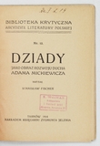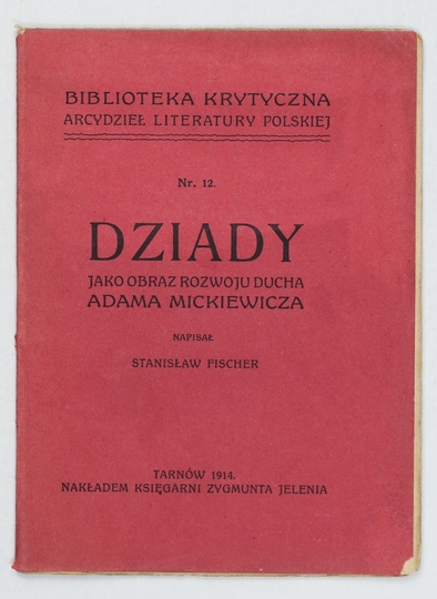 FISCHER Stanisław – Dziady jako obraz rozwoju ducha Adama Mickiewicza. Tarnów 1914. Księg. Z. Jelenia. 16, s. 32. brosz. Bibliot. Krytyczna Arcydzieł Literatury Polskiej, nr 12.
