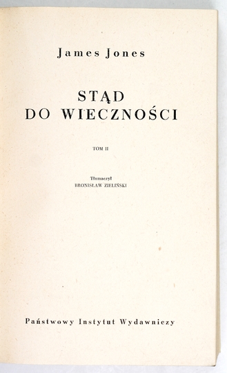 JONES James – Stąd do wieczności. Tłumaczył Bronisław Zieliński. T. 1-2. Warszawa 1963. PIW. 16d, s. 444, [4]; 517, [3]. brosz.