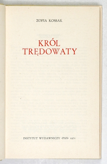 [oraz] KOSSAK Zofia - Król trędowaty. Warszawa 1971. PAX. 8, s. 218, [2]. opr. oryg. pł., obw.