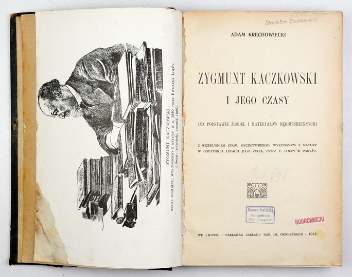 KRECHOWIECKI Adam – Zygmunt Kaczkowski i jego czasy. (Na podst. źródeł i materyałów rękopiśmiennych). Z wizerunkiem Z.Kaczkowskiego [...]. Lwów 1918. Ossolineum. 8, s. [4], 486, VII, [3], tabl. 1. opr. późn. psk.