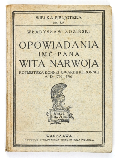 ŁOZIŃSKI Władysław – Opowiadania jmć pana Wita Narwoja, rotmistrza konnej gwardyi koronnej. A. D. 1760-1767. Warszawa [ca 1920]. Instytut Wydawniczy "Bibljoteka Polska". 16d, s. 233, [1]. brosz. Wielka Bibljoteka, nr 127.