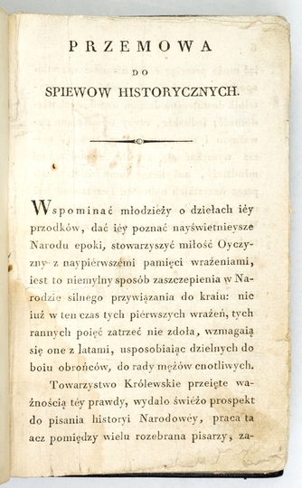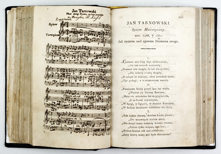 NIEMCEWICZ Jul[ian] Urs[yn] – Śpiewy historyczne z muzyką i rycinami. Edycya druga. Warszawa 1818. Drukarnia Nro 646. 16d, s. 437, [3], tabl. 29, nut 32. opr. wsp. skóra.