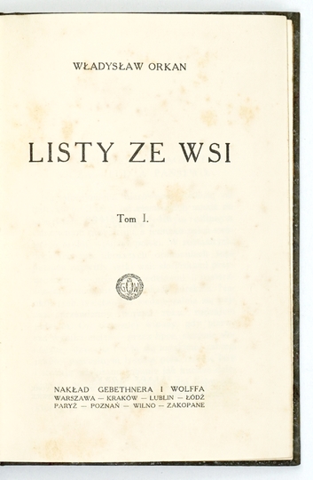 ORKAN Władysław – Listy ze wsi. T. 1. Warszawa 1925. Gebethner i Wolff. 16d, s. 178, [2]. opr. kart. z epoki z zach. okł. brosz.