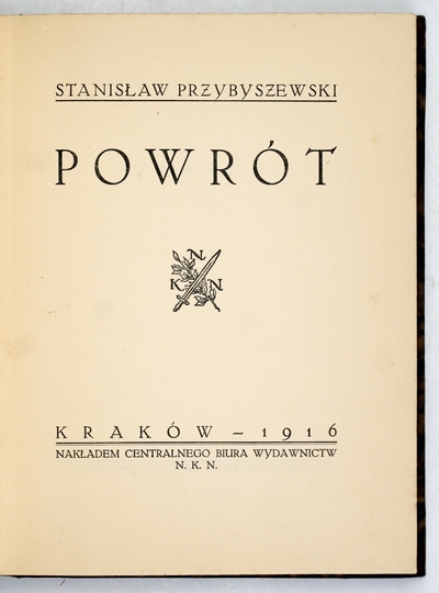 PRZYBYSZEWSKI Stanisław – Powrót. Kraków 1916. Nakł. NKN. 8, s. 133. opr. późn. ppł.