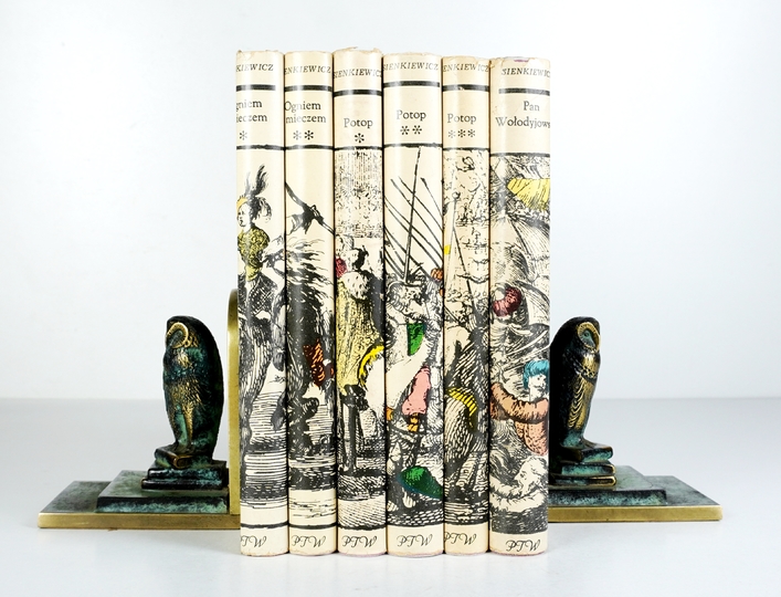 SIENKIEWICZ Henryk – Trylogia: Ogniem i mieczem. T. 1-2. Potop. T. 1-3. Pan Wołodyjowski. Warszawa 1972. PIW. 8, s. 412, [4], tabl. 10; 400, [2], tabl. 10; 413, [3], tabl. 12; 524, [2], tabl. 12; 370, [2], tabl. 12; 545, [3], tabl. 10. opr. oryg. pł., obw.