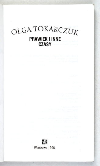 TOKARCZUK Olga – Prawiek i inne czasy. Warszawa 1996. Wyd. W.A.B. 16d, s. 269, [3]. brosz.