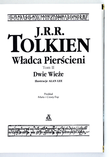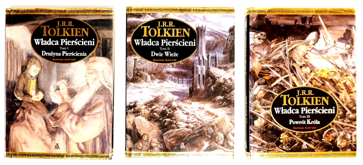 TOLKIEN J[ohn] R[onald] R[euel] – Władca Pierścieni. T. 1-3. Ilustr. Alan Lee. Przekład Maria i Cezary Frąc. Warszawa 2001. Amber. 8, s. 382, [2], tabl. 18; 326, [2], tabl. 16; 396, [4], tabl. 15. opr. org. kart., obw. Dzieła Tolkienowskie.