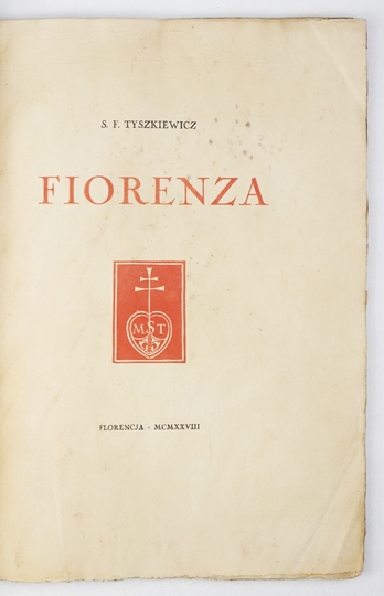 TYSZKIEWICZ S[amuel] F[ryderyk] – Fiorenza. Florencja 1928. Oficyna Tyszkiewiczów. folio, s. [6], 51, [3], tabl. 12 [drzeworyty]. bez oprawy.