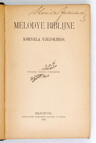 UJEJSKI Kornel – Melodye biblijne. Wyd. III pomnożone. Przemyśl 1893. Księg. Jelenia i Langa. 16d, s. 102, [2]