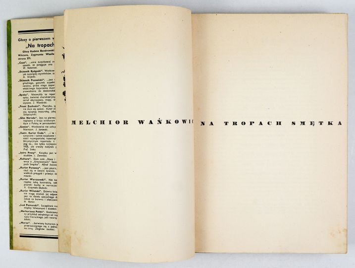 WAŃKOWICZ Melchior – Na tropach Smętka. Wyd. III. Warszawa 1936. Wyd. Bibljoteka Polska. 8, s. 372, tablice, mapy rozkł. brosz., obw.