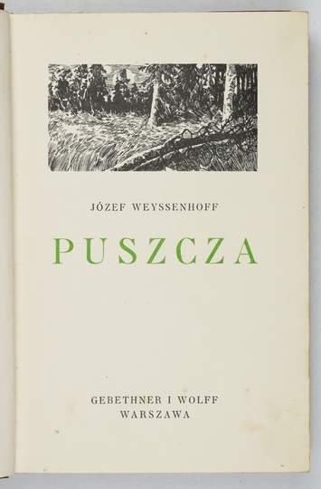 WEYSSENHOFF Józef – Puszcza. Powieść. Z 10 ilustracjami Kamila Mackiewicza. Warszawa 1930. Nakł. Gebethnera i Wolffa. 8, s. 261, tabl. 10.op. oryg. pł. zdob. z zach. okł. brosz.