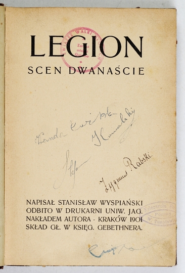WYSPIAŃSKI Stanisław – Legion. Scen dwanaście. Kraków 1901. Nakł. autora. 8, s. 137, [1]. opr. późn. ppł.