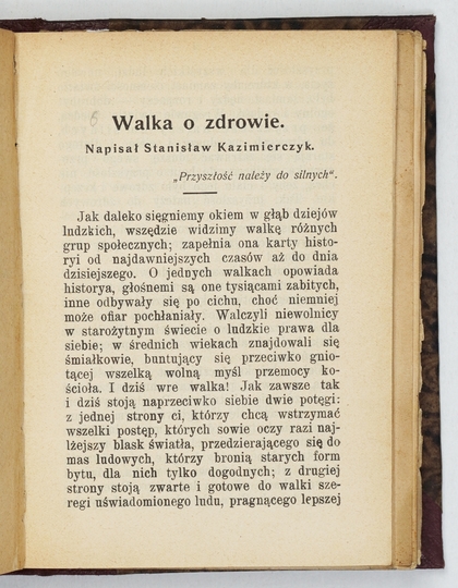 [oraz] KAZIMIERCZYK Stanisław - Walka o zdrowie. [Kraków 1905]. Nakładem Administracyi "Naprzodu", Franciszek Sułczewski. Druk. Władysława Teodorczuka, 16, s. 36.