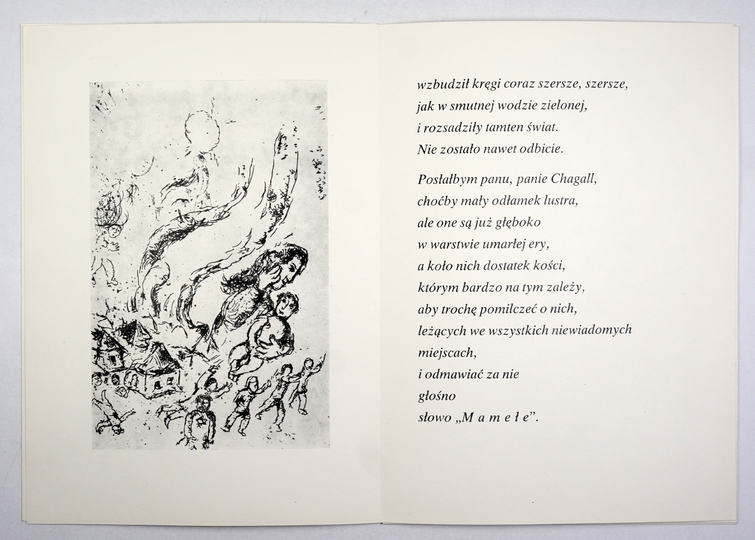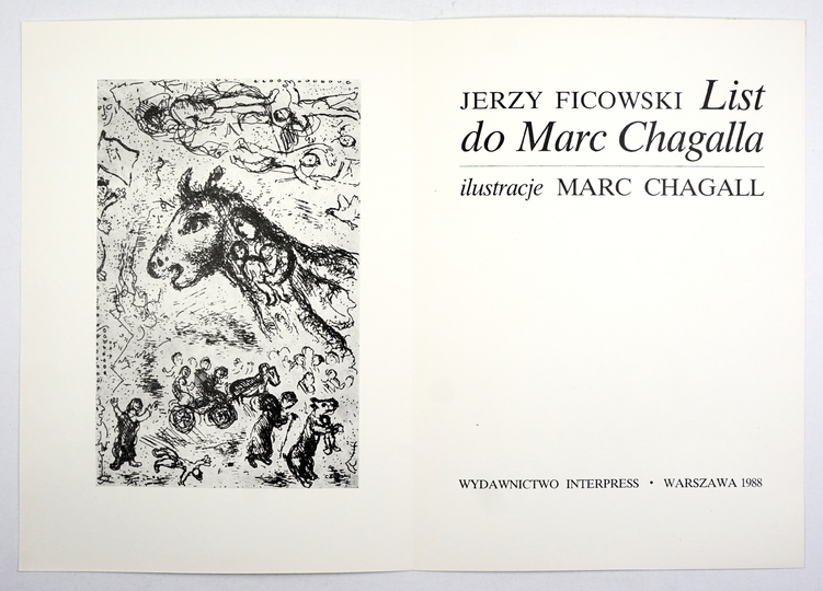 FICOWSKI Jerzy – List do Marc Chagalla. Ilustr. M. Chagall. Warszawa 1988. Interpress. 4, s. [18]. oryg. teka kart.