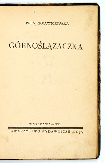 GOJAWICZYŃSKA Pola – Górnoślązaczka. Warszawa 1938. Tow. Wyd. "Rój". 16d, s. 58, [5]. opr. bibliot. ppł. z epoki z zach. okł. brosz.