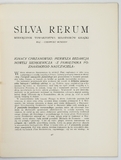 SILVA Rerum. Czasopismo polskich towarzystw bibljofilskich. Kraków. Red. H. Zdzitowiecka-Jasieńska. Druk. W. L. Anczyca. 4. brosz.