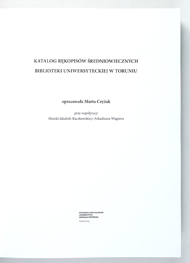 CZYŻAK Marta – Katalog rękopisów średniowiecznych Biblioteki Uniwersyteckiej w Toruniu. Oprac. ...przy współpracy Moniki Jakubek-Raczkowskiej i Arkadiusza Wagnera. Toruń 2016. Wydawnictwo Naukowe Uniwersytetu Mikołaja Kopernika. 4, s. LVII, 462. opr. oryg. kart., obw.