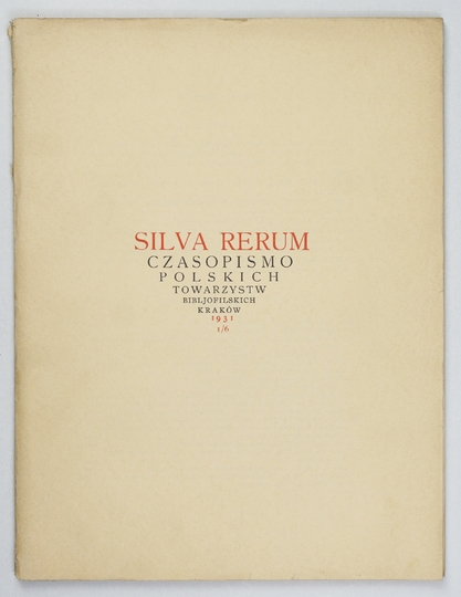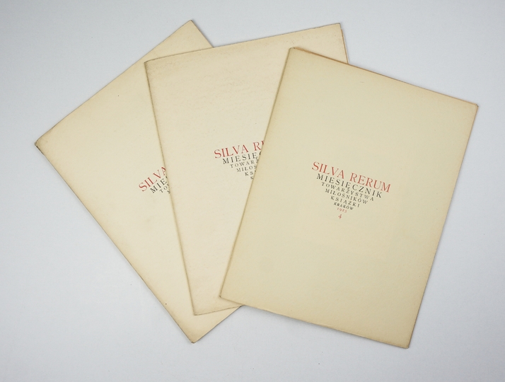 SILVA Rerum. Miesięcznik Towarzystwa Miłośników Książki w Krakowie. Kraków. Red. W. Kluger. Druk. W. L. Anczyca. 4. zeszyty luzem.