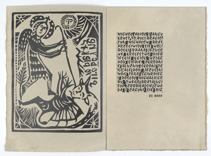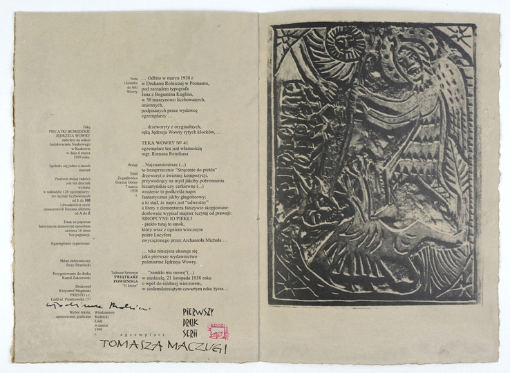 WOWRO Jędrzej – Archanioł Michał strącający Antychrysta do piekieł. Opowiadanie Jędrzeja Wawry ozdobione jego piecątkom. Łódź 1999. W. Rudnicki. 4, s. [16]. brosz. W Łodzi Mierz, nr 1.