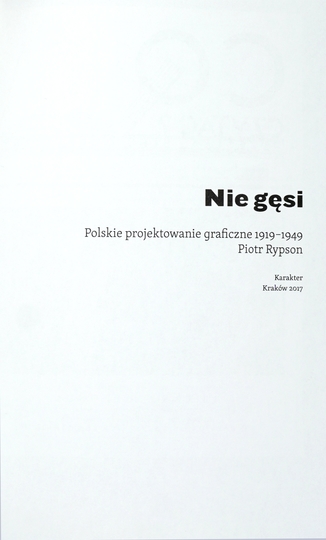 RYPSON Piotr – Nie gęsi. Polskie projektowanie graficzne 1919-1949. Kraków 2017. Karakter. 8, s. 406, [2]. brosz.