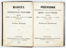 ZIELIŃSKI Wiktoryn – Przewodnik po konwersacyi czyli praktycznej nauki języka francuskiego ułożony podług najlepszych źródeł i własnego doświadczenia. Warszawa 1866. Nakładem Księgarni Braci Szleifstein. 16d, s. [4], IV, 409, [1], V, [1]. opr. pł. z epoki.
