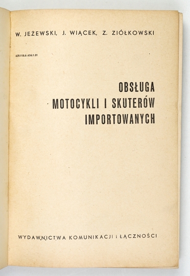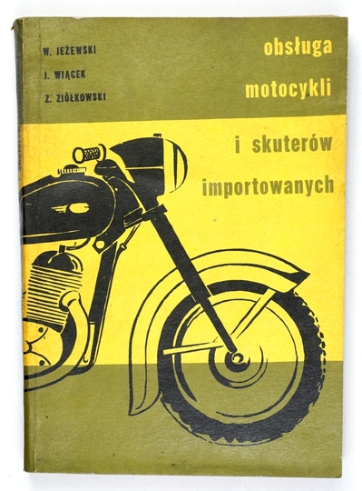 JEŻEWSKI W., WIĄCEK J., ZIÓŁKOWSKI Z. – Obsługa motocykli i skuterów importowanych. Warszawa 1966. Wydawnictwa Komunikacji i Łączności. 8, s. 397, [2]. brosz.