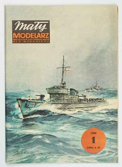 MAŁY Modelarz. Miesięcznik Ligi Obrony Kraju dla młodzieży. Nr 1/1980: Polski trałowiec ORP "Jaskółka".