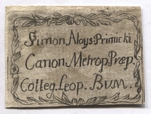 [PRIMICKI Szymon Alojzy]. Simon Aloys: Primicki Canon. Metrop. Praep. Colleg. Leop. Bum.