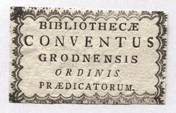 [BIBLIOTEKA Dominikanów w Grodnie]. Bibliothecae Conventus Grodnenis Ordinis Praedicatorum.