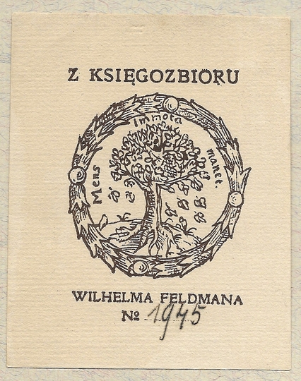 [FELDMAN Wilhelm]. Z księgozbioru Wilhelma Feldmana.