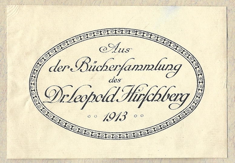 [HIRSCHBERG Leopold]. Aus der Büchersammlung des Dr. Leopold Hirschberg. 1913.