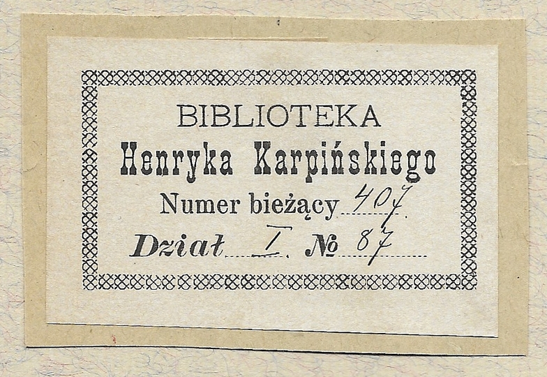 [KARPIŃSKI Henryk]. Biblioteka Henryka Karpińskiego.