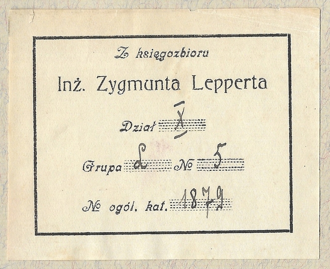 [LEPPERT Zygmunt]. Z księgozbioru Inż. Zygmunta Lepperta.